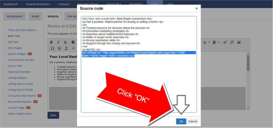 NOTE: Market Leader websites require the Option 2 Widget Code. This help article will walk you through the process of adding the widget to your Market Leader website.