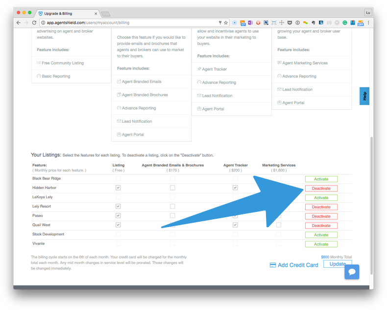 This help article will show you how to "Deactivate" a listing. Listings do not get "deleted" from our system. The listing can be removed from your account by "deactivating" the listing. The ONLY place that deactivated listings show up at are on your "Upgrades and Billing" page. This will save you time in the future by giving you the option of reactivating the listing without having to enter all the info again.